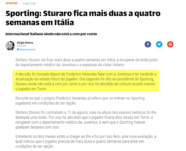 Só mesmo na cabeça de iluminados como Sousa Cintra e José Peseiro é que cabe a ideia de gastar milhões de euros num jogador lesionado. Falo obviamente da contratação de Stefano Sturaro que importa hoje recordar.