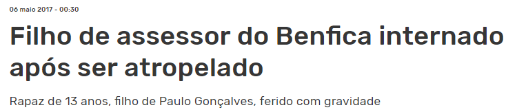 Só que... não. Nem os emails, nem as mensagens relacionadas com missas e padres são relativos ao período em que o filho de Paulo Gonçalves sofreu o acidente. Como podem verificar de seguida, o acidente ocorreu a 5 de Maio de 2017 e as mensagens trocadas pelo Whatsapp e referidas pelo jornal são datadas de meados de Fevereiro de 2018. Mais de 10 meses depois.