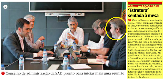 Mau Maria! Então o Paulo Gonçalves não era apenas um advogado que por lá andava a pastar? Afinal de contas faz parte da tão afamada estrutura, é considerado pelo próprio presidente como fazendo parte da equipa que trata do core business e ainda por cima tem lugar cativo nas reuniões do conselho de adminitração da SAD. Palavra de Nuno Farinha que relatou tudo isto no jornal Record.