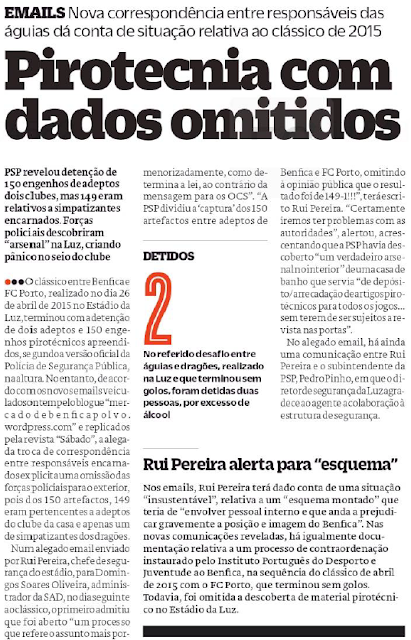 EliminarO problema é que depois, na FPF, o CD atribuiu multa igual aos 2 clubes, acrescendo que, enquanto o engenho atribuído ao FCP estava na posse de um adepto, parece que, os 149 estavam numa casa de banho do toupeirense, ou seja, com a conivência daquela merda de clube.