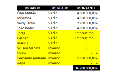 E isto vai completamente contra o vergonhoso discurso miserabilista da "falta de dinheiro". Falta dinheiro e andamos a gastar 35M em reforços? Falta dinheiro e nesta janela de mercado gastamos cerca de 11,3M? Os números falam por si.