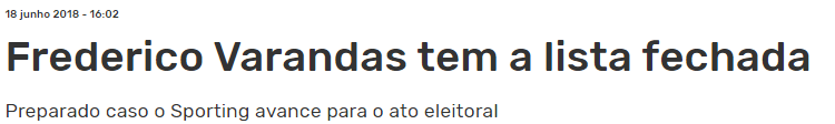 A ver se nos entendemos. Frederico Varandas montou a sua equipa bem antes da AG de destituição, quase com uma certeza inabalável que o clube iria a eleições antecipadas. O tempo tem-nos mostrados alguns dos delegados dessa AG e vamos percebendo todos esses nomes que vão surgindo estão ligados à candidatura do actual presidente do Sporting, quer através das ligações políticas à Juventude Popular, quer através de ligações à LPM.