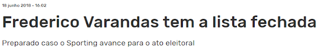 Ora, esta notícia é de 18 de junho de 2018, que como sabem é anterior à AG de destituição de Bruno de Carvalho, realizada a 23 de junho. Ou seja, ainda antes de haver sequer destituição, Varandas já tinha a lista fechada para uma eleições que nem sequer se sabia se iriam ocorrer. Uma lista que contava, obviamente, com Francisco Rodrigues dos Santos. Portanto, o nosso amigo "Chicão" precisou de cerca de um mês para mudar de opinião sobre à relação entre o futebol e a política. Absolutamente fantástico.