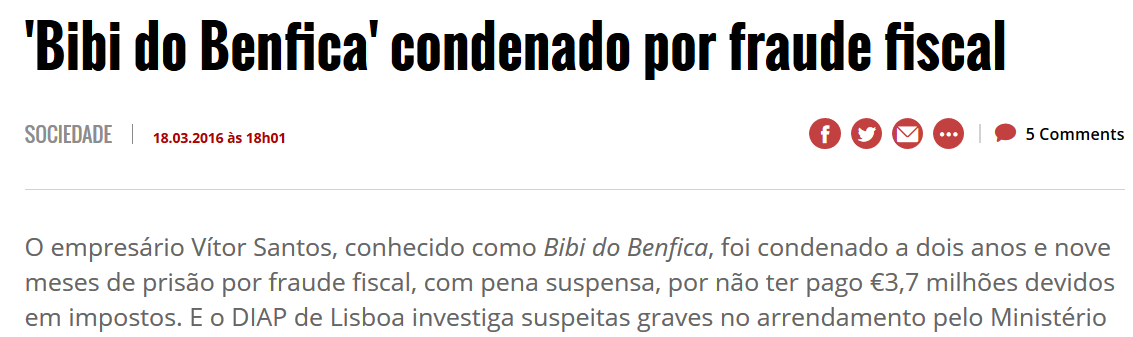 Por falar em ex-dirigentes do Benfica. Esta época juntou mais uns quantos artistas à lista de "criminosos". Há que dar o mérito ao Benfica que esta época atingiu o "pleno" de Presidentes "vivos" com problemas com a justiça. Depois de Vale e Azevedo, Manuel Vilarinho e Luis Filipe Vieira eis que chegou a vez de Manuel Damásio fechar a quadratura do circulo lampião.
