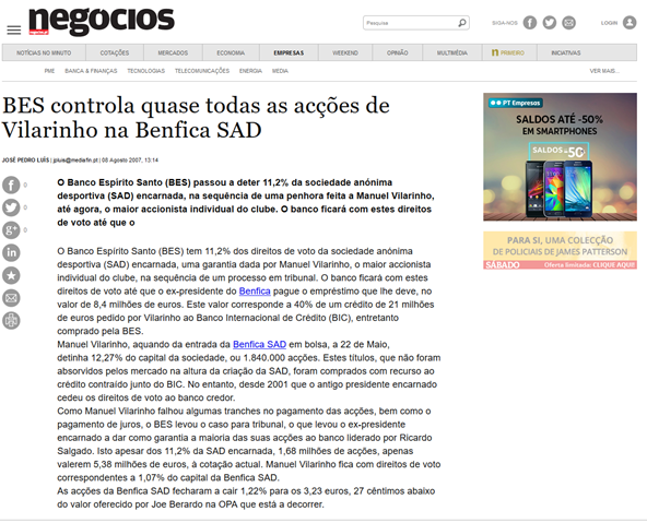 Vamos ao que interessa. Querem saber como é que o BES ficou com capital do Benfica!? Leiam a notícia seguinte: